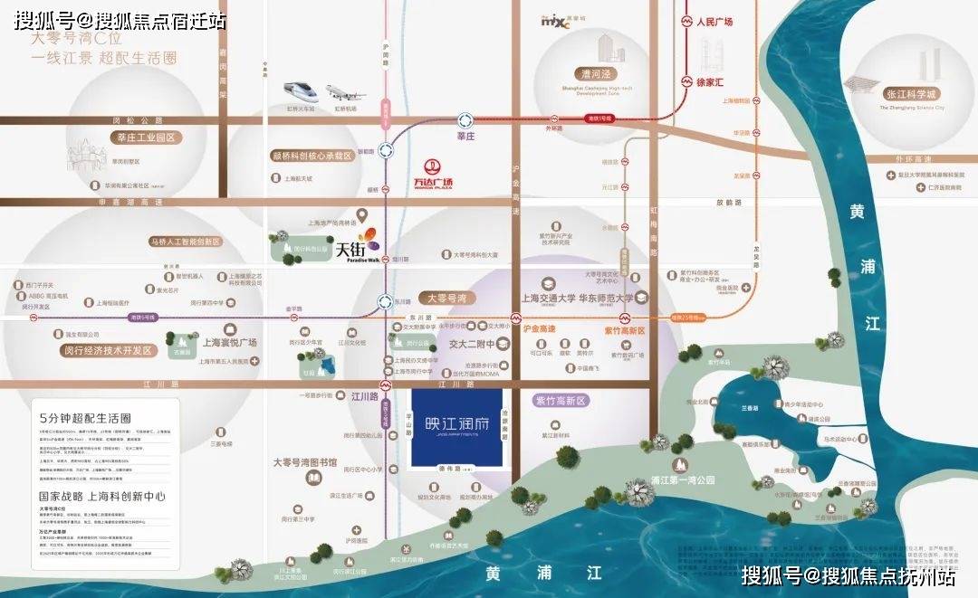 「华润置地·映江润府」距离5号线江川路地铁站直线米,距离黄浦江直线米,通勤优势+滨水社区,几乎没有对手!